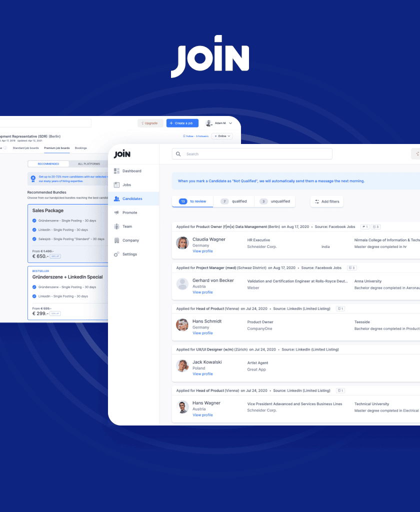 Join is a Swiss company with its main office in Berlin. It has reinvented the recruitment process, making it fast, fun, and effective.