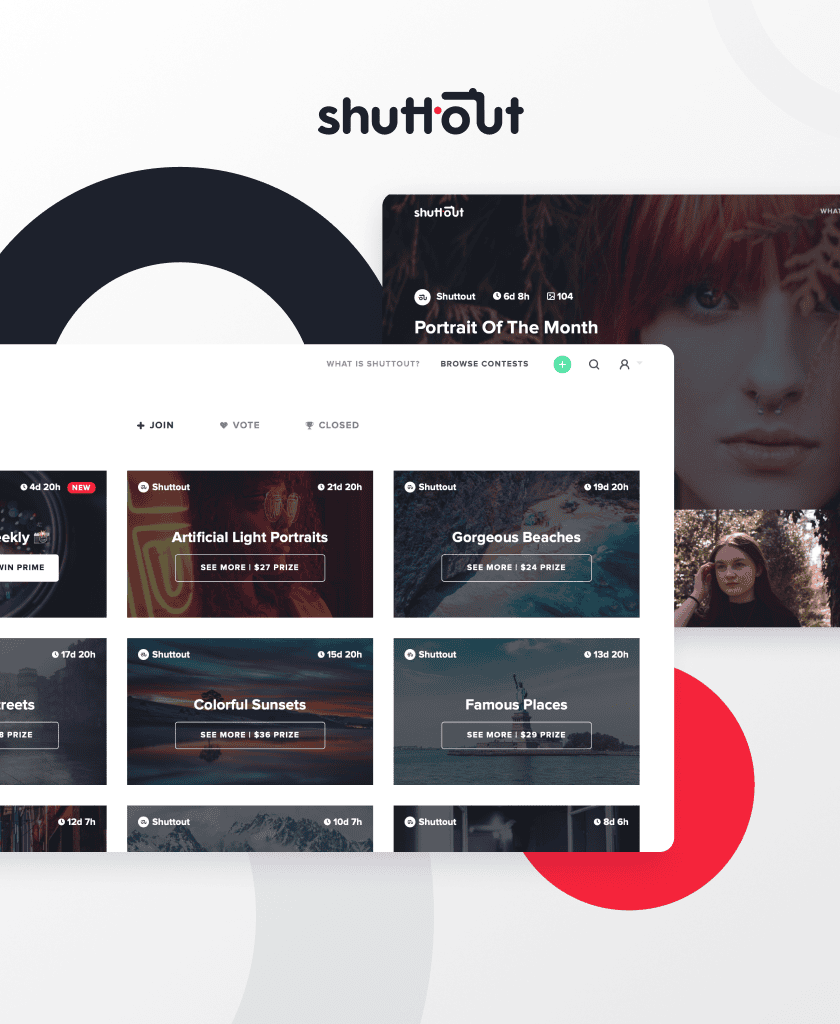 Shuttout is a social platform where photographers share their work competitively. Artists enter contests, win prizes, and improve their skills.